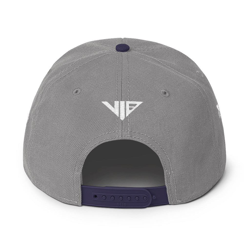 This is the snapback of your dreams! It's structured and high-profile, with a flat visor and a subtle grey under visor.